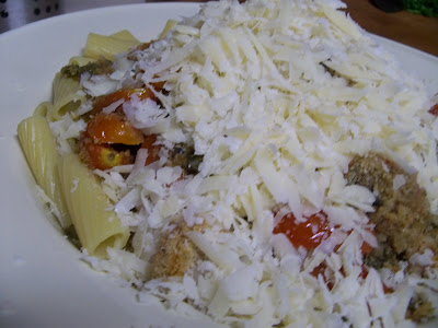 Notes: I used Parmigiano Reggiano, rather than Romano cheese. It worked fine. Also, I added red pepper flakes--a much-needed kick. Finally, next time I make it, I'll finish the dish by sprinkling a little more Italian breadcrumbs on top then baking for a few minutes. It needed a tad of some kind of golden crispiness as a topper. Otherwise, super easy and tasty.
